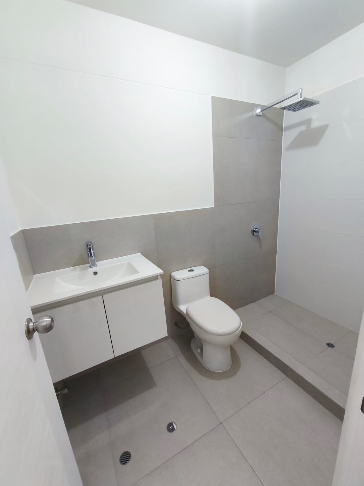 Baño con mueble bajo y ducha española
