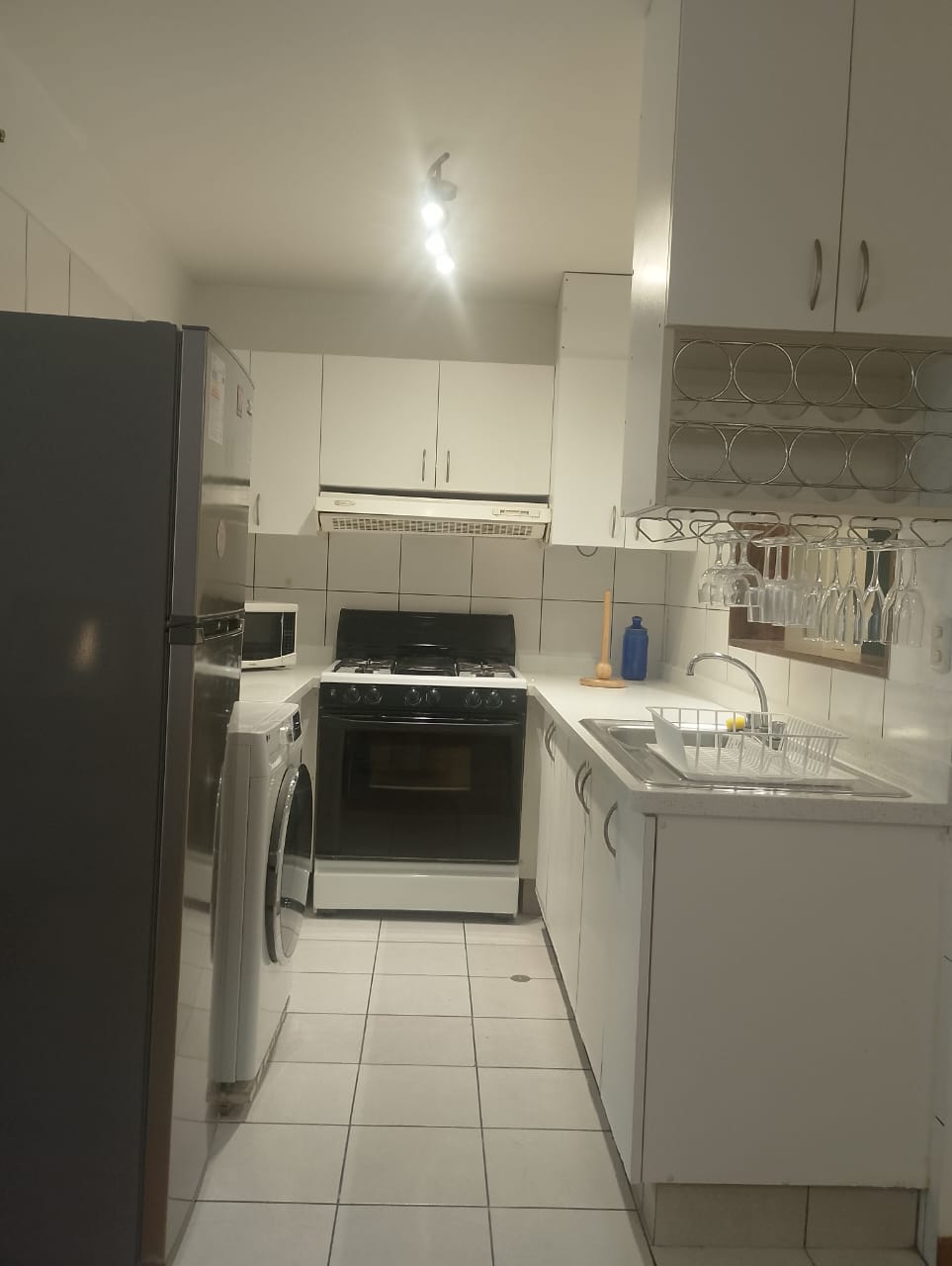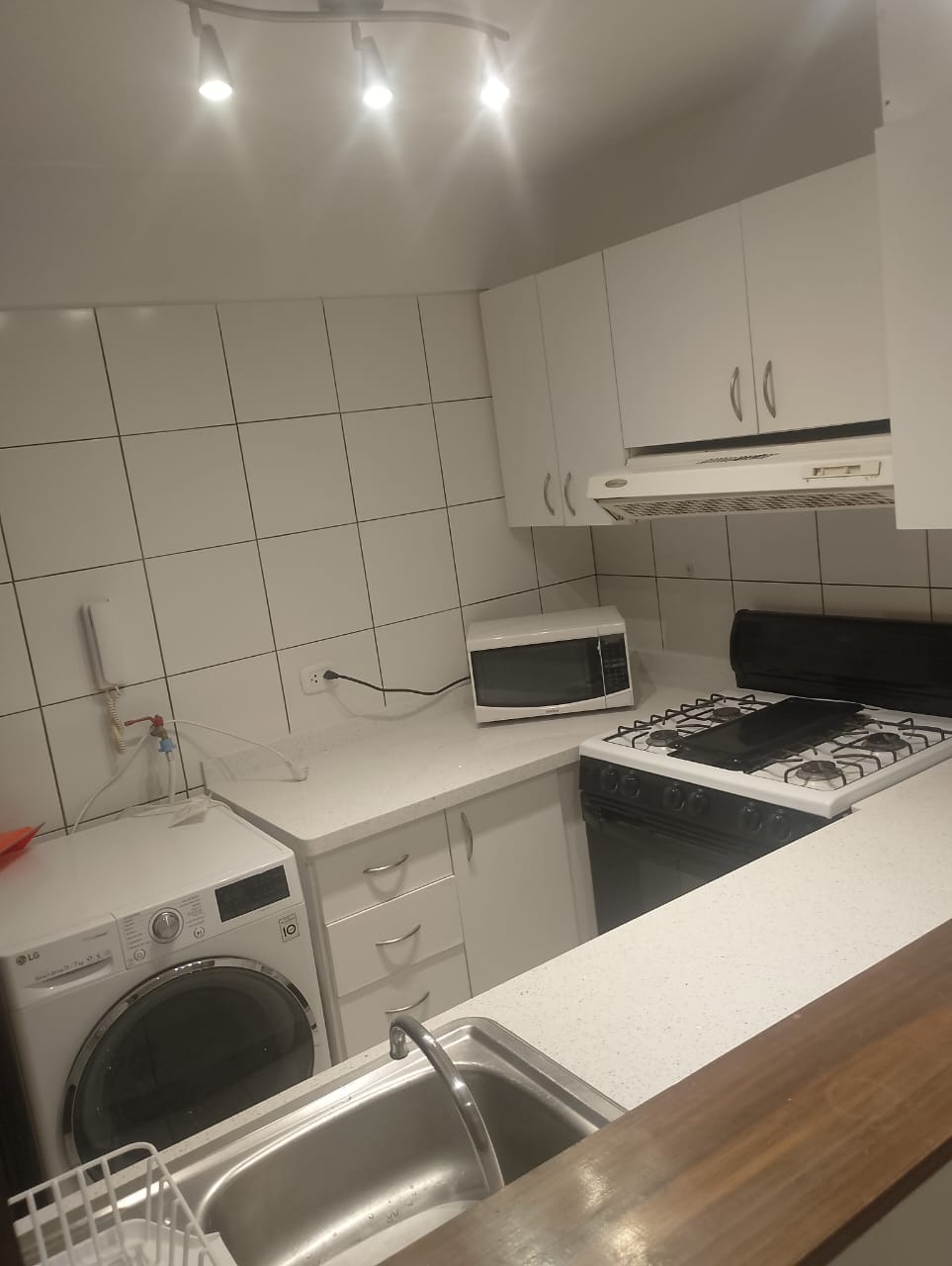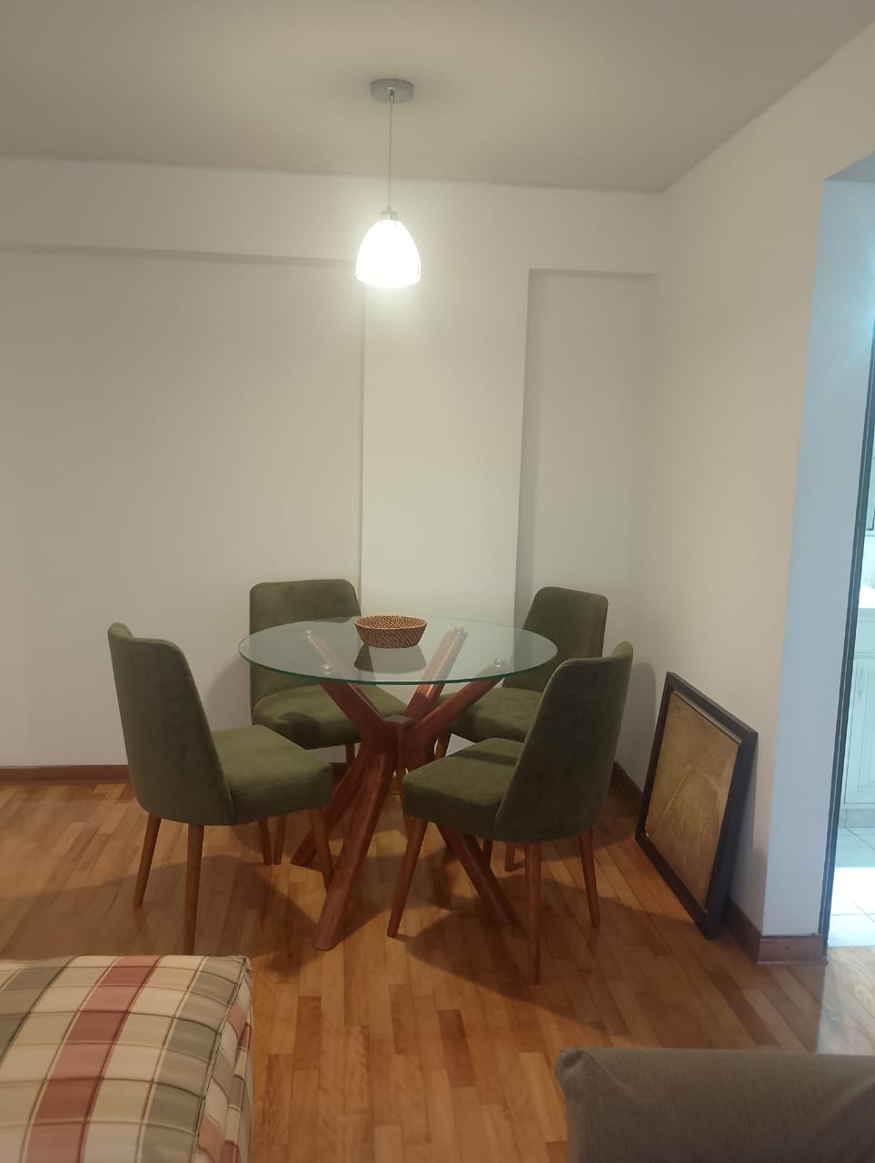 Un dormitorio con closet y tv, salita con tv, comedor para 4 personas, kitchenette, lavaseca, cochera.