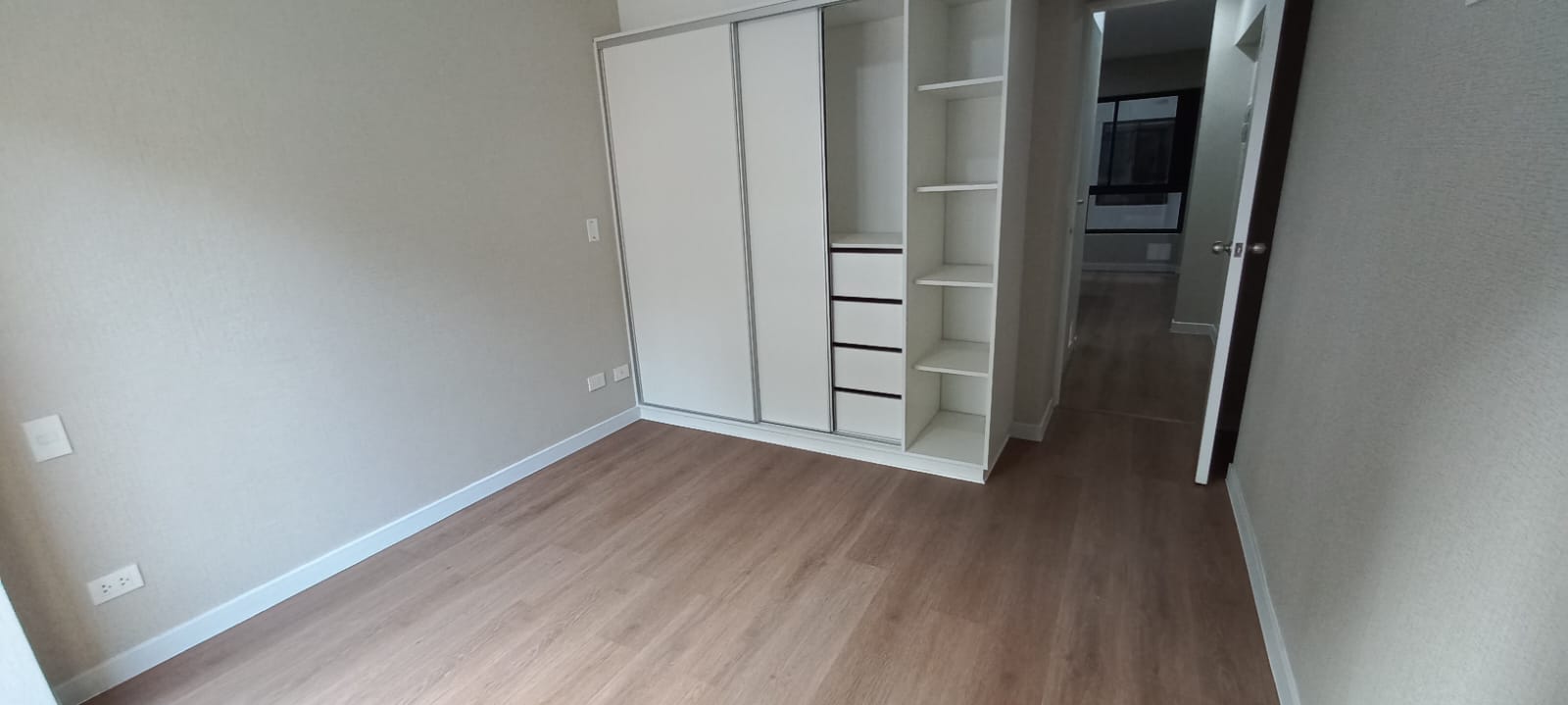 01 dormitorio con closet empotrado y balcón Vista Avenida