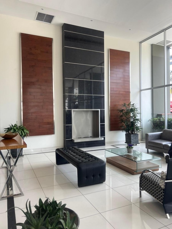 El Departamento se encuentra en un Edificio que tiene un elegante lobby con Seguridad las 24 horas del día y con un área para reuniones y tiene 2 ascensores y consta de 15 pisos.