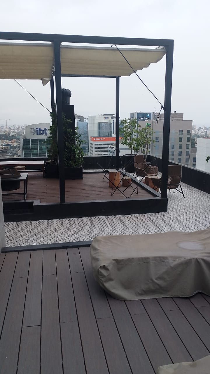 Vendo excelente dpto. 46 m2 ,4 años antigüedad, un dormitorio con balcón, salita con balcón, kitchenette, lavandería, baño completo, escritorio.